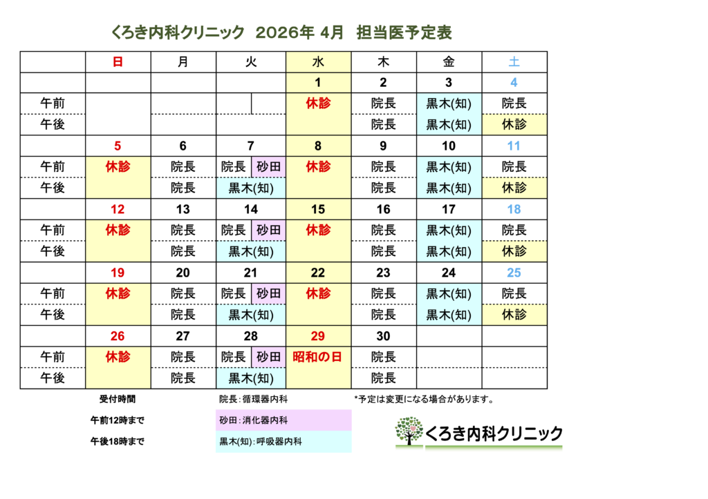 2026年4月担当医表